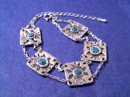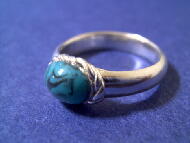 銀粘土で土台を作り中心にターコイズ風のポリマーをセットしました。