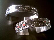 銀板から作ったバングルです。モチーフ部は銀粘土で作り本体にロウ付けしました。
